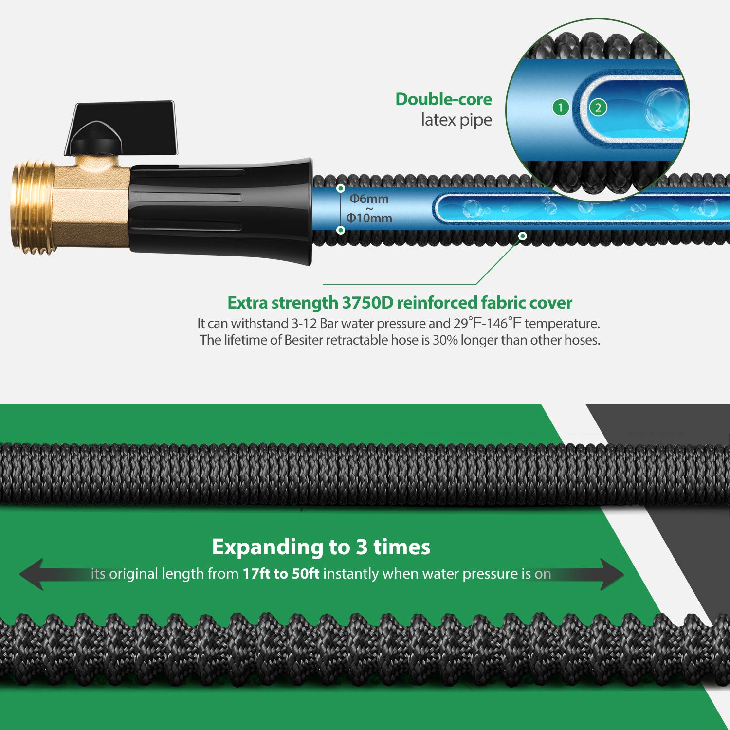 - [Lightweight And Flexible Garden Hose]The New InGarden expandable hose is lightweight.,which is convenient for children and women to carry it up.Turn on the water ,the hose will quickly expand to 3 times in length with the water pressure (3-12 Bar) and returns in minutes to its original length when water is out. Just insure that there is enough water pressure to expand the garden hose.